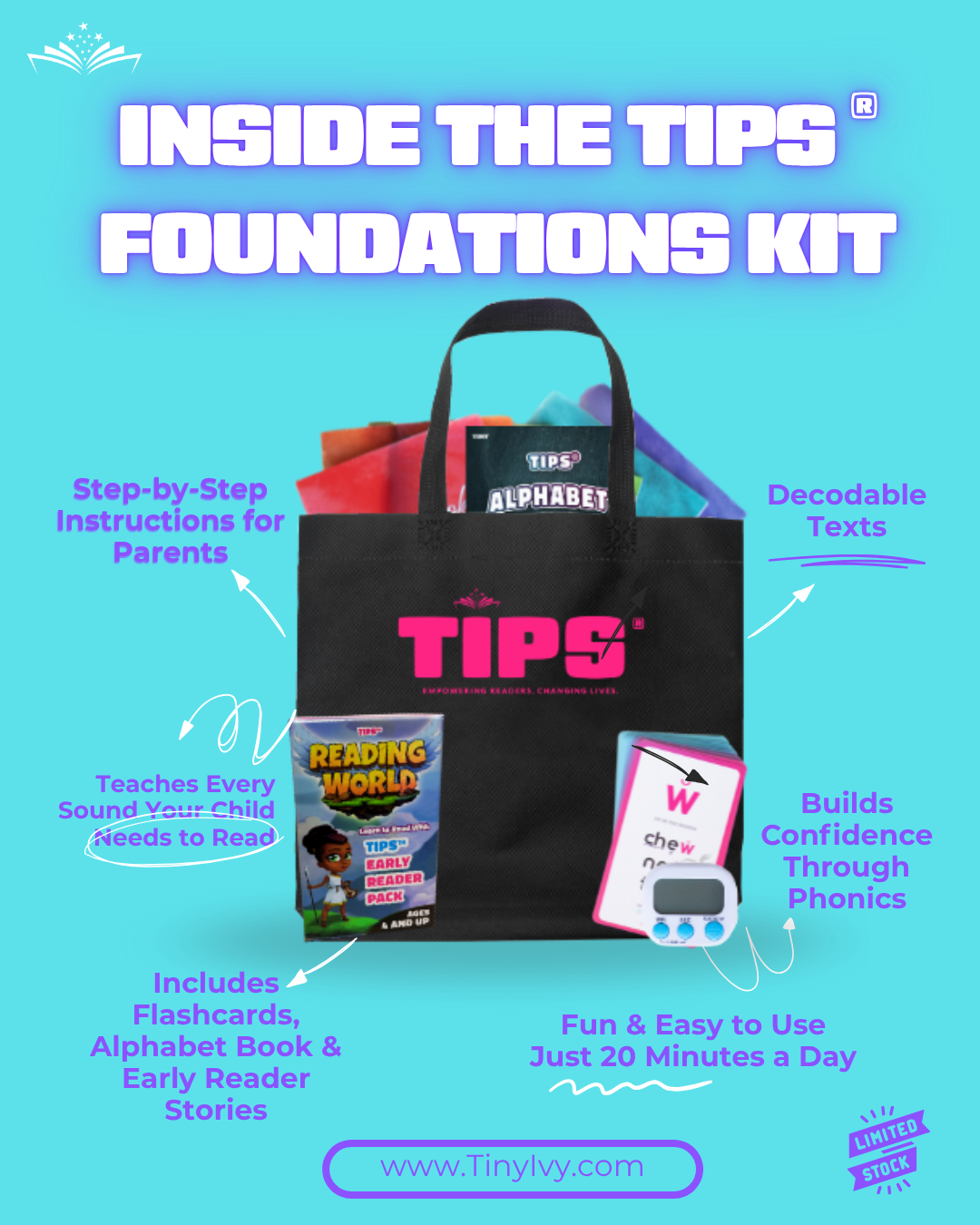 The TIPS® Home Kit is an at-home literacy program that helps children build strong reading skills through phonics-based instruction, games, and activities.