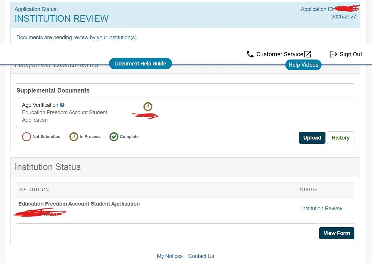 If you go back in and review the application again now it will show institution review on the right there next to the new student that has been added.