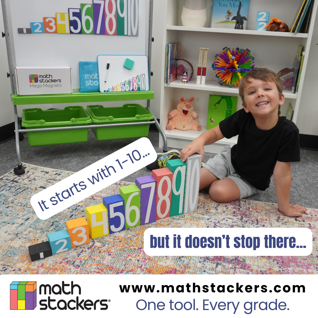 All purchases of a Learning System include lifetime access to Math Stackers U, our online professional development site with training videos, activities, and printable resources. We also offer Math Stackers® magnets (Mega and Mini) that mimic the foam blocks - perfect for whiteboard demonstrations or independent practice.