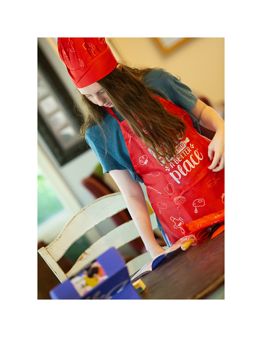 Korah (13) and Kel (11) both enjoy using the Baketivity boxes. This go we went boys versus girls and they each took an assistant. Part of this lesson wasn’t just about baking. Part of this lesson was learning how to interact with and manage and assist a small child in the process. Help them read the instructions, help them measure, TEACH someone else a skill that you already have.