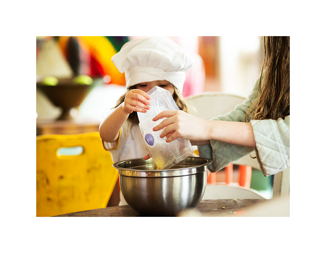 Another group of the kiddos another Baketivity kit. My Teen has been helping the younger children learn to bake and learning about how to teach students. She has an interest in possibly being a teacher, so we have been working on credits for her Early Childhood Education class. The premeasured ingredients help a lot when you have many very grabby little hands. Learning to pour and mix are great skills at their age that help develop not only motor skills but lessons in patience and taking turns!