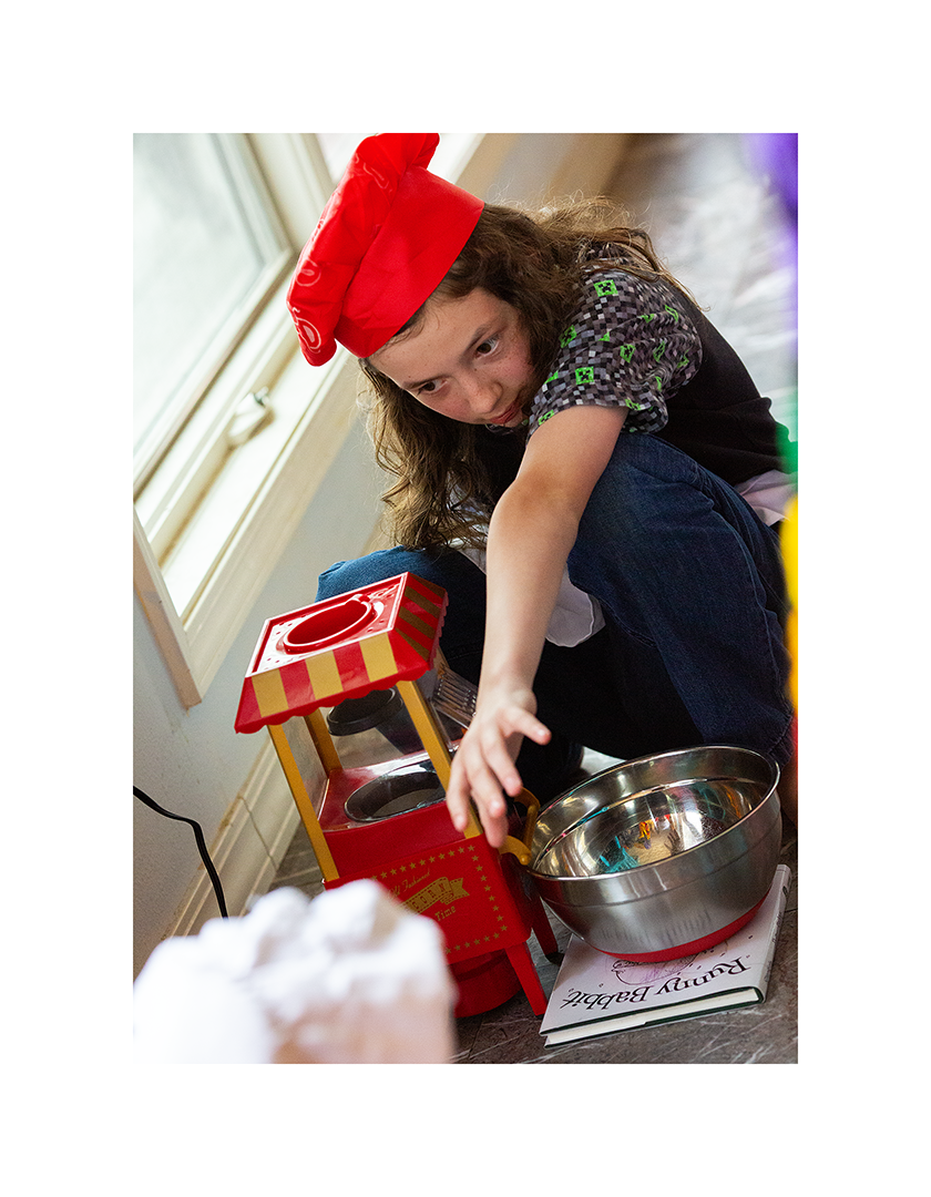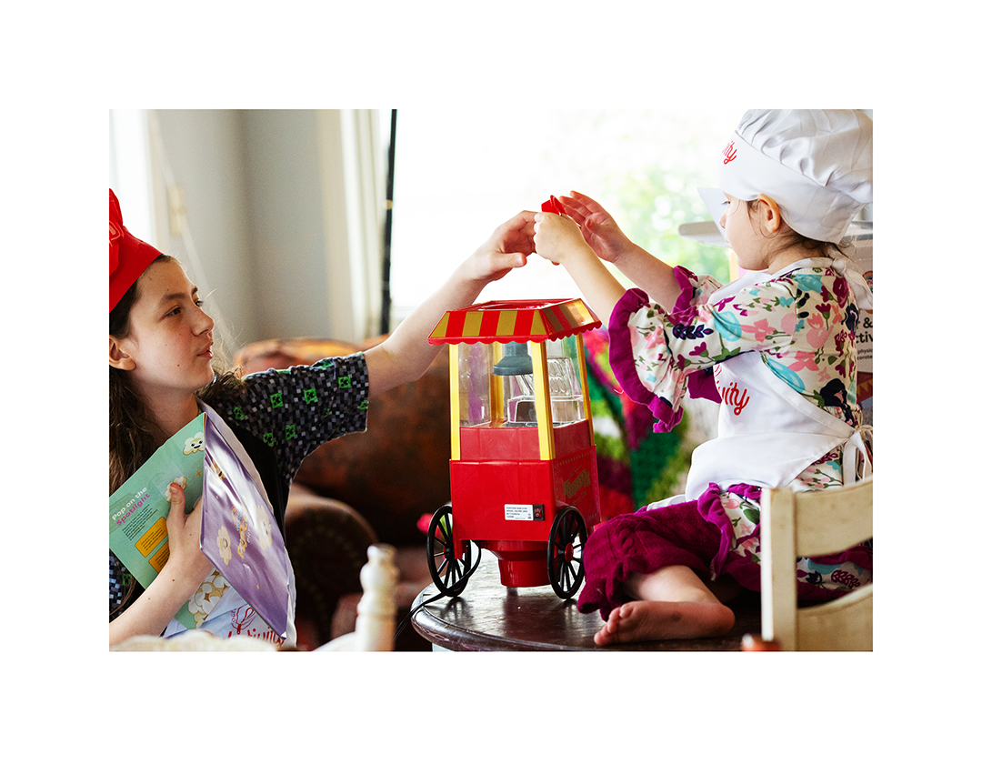 After they read all of the instructions and went over everything in the booklet. We got popcorn out and ready and they went about setting it up.
